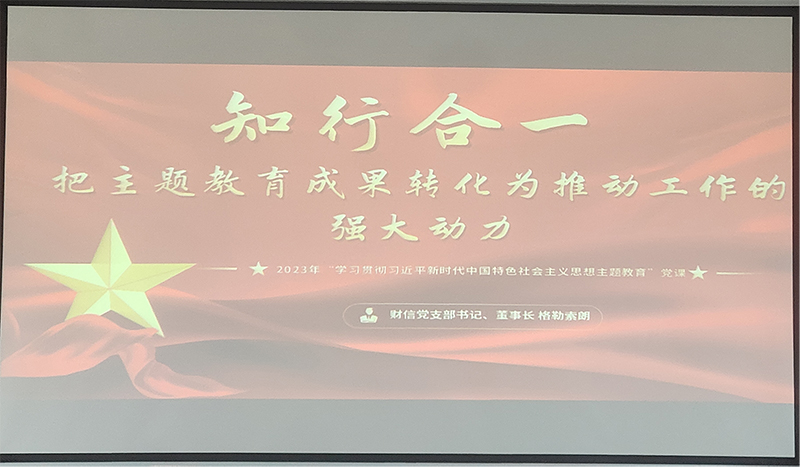 為深入開展學(xué)習(xí)貫徹習(xí)近平新時代中國特色社會主義思想主題教育,全面貫徹黨的二十大精神、推進新時代黨的建設(shè)偉大工程的總體要求,按照區(qū)政府國資委、區(qū)投資公司黨委關(guān)于主題教育的統(tǒng)一安排部署,公司黨支部書記、董事長格勒索朗同志于近期以“知行合一,把主題教育成果轉(zhuǎn)化為推動工作的強大動力”為題,開展主題教育黨課。支部副書記、副總經(jīng)理李敏同志主持學(xué)習(xí)會議,公司全體干部職工參加學(xué)習(xí)。